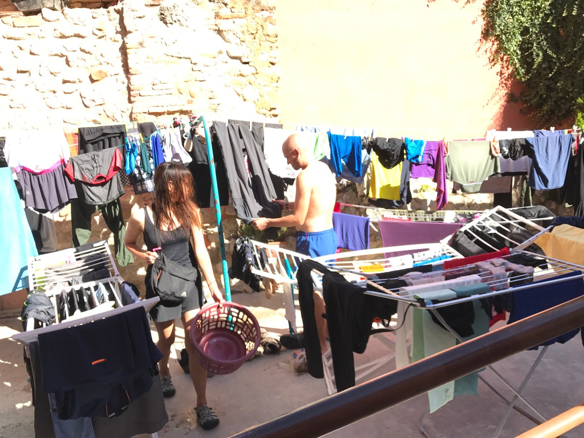 Once checked in we lay out our sleeping bags, organize our space, shower and either do laundry or find a restaurant for lunch. Many people takes naps. The rest of the afternoon and evening is spent exploring the town and hanging out with friends. Dinners are generally cooked in the albergue kitchens. Tonight, the Italians are cooking and tomorrow night Ryan and I! This is a very rich time!